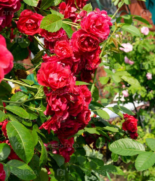 Восхождение на красную розу в саду