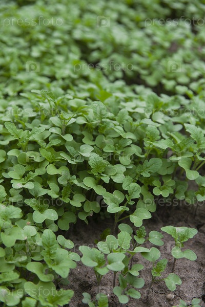 Саженцы белой горчицы, используемые в качестве сидерата в органическом садоводстве
