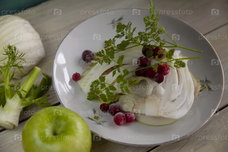 Домашний салат из свежего фенхеля на белом фоне