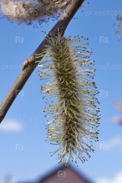 Весна.Ива (лат. Salix) цветет, серьги соцветия распустились