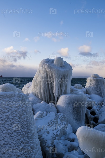 Обледеневший берег японского моря