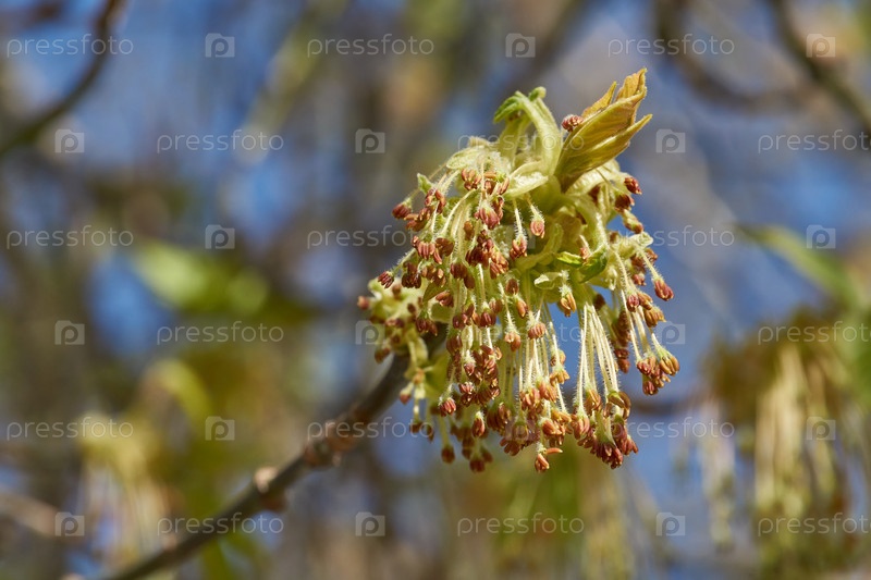 Растворяются цветочные почки остролистного клёна (лат. Acer platanoides). Деревянный вид растения рода Асер семейства Сапиндовых