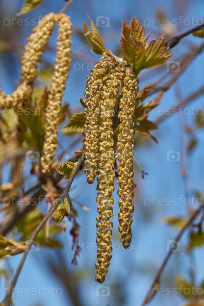 Тычиночные серьги березы зацвели ранней весной до появления листьев