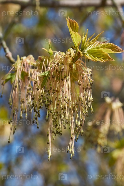 Растворяются цветочные почки остролистного клёна (лат. Acer platanoides). Деревянный вид растения рода Асер семейства Сапиндовых
