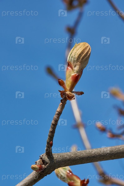 Распускаются бутоны цветков каштана и появляются соцветия. Весна