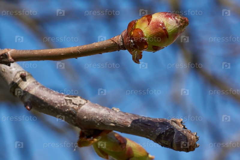 Распускаются бутоны цветков каштана и появляются соцветия. Весна
