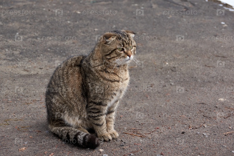 Весна. Домашняя кошка гуляет во дворе дома