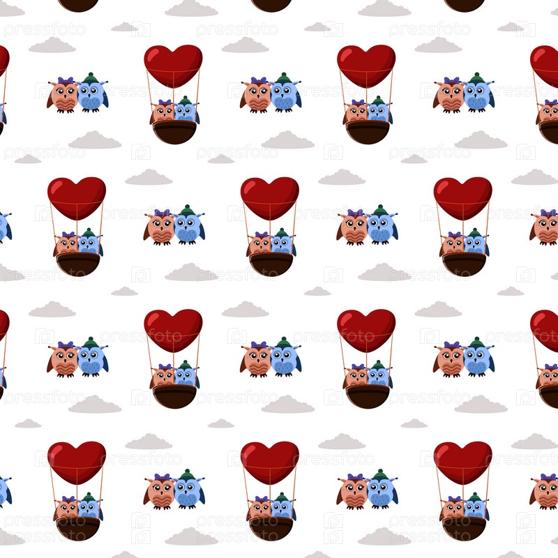 Узор с влюбленными совами на воздушном шаре бесшовное векторное изображение, подходящее для обоев