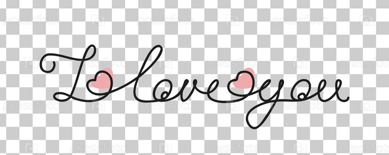 Надпись "Я люблю тебя" в одной строке с вектором сердца без элемента фонового дизайна для открытки ко Дню святого Валентина в линии искусства в кривых