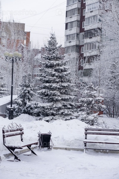 Замерзшие деревья в сильный мороз в парке