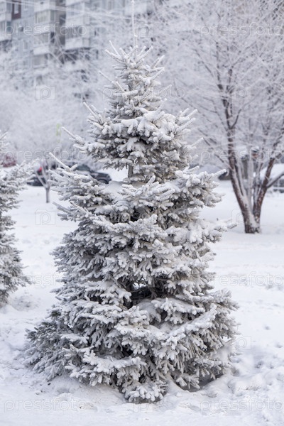 Замерзшие деревья в сильный мороз в парке