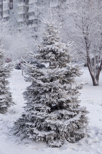 Замерзшие деревья в сильный мороз в парке