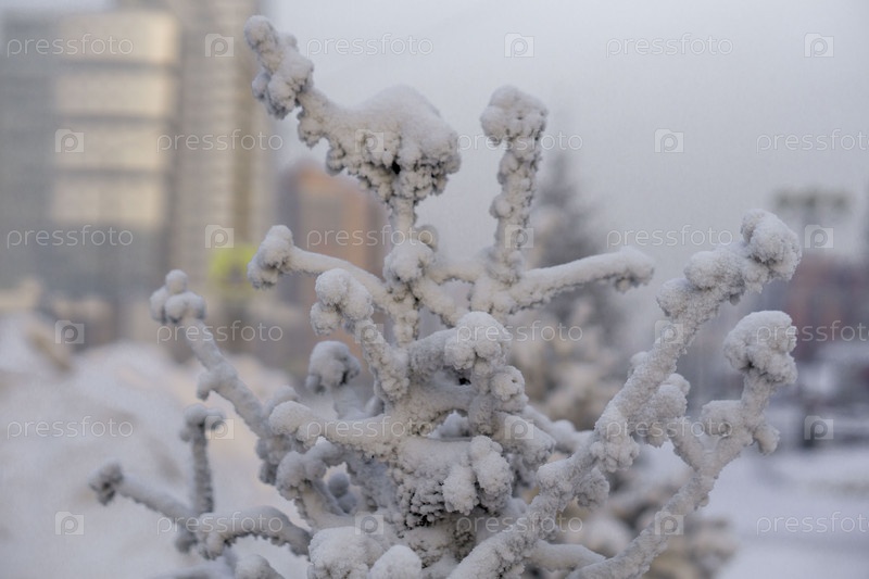 Замерзшие деревья в сильный мороз в парке