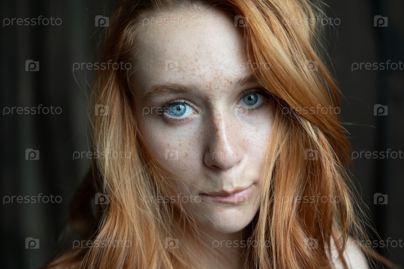 Портрет молодой красивой женщины с рыжими волосами в студии