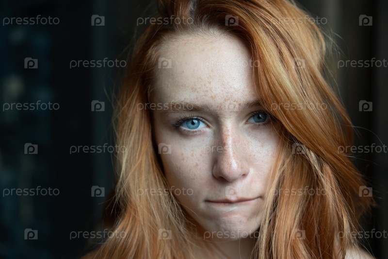 Портрет молодой красивой женщины с рыжими волосами в студии