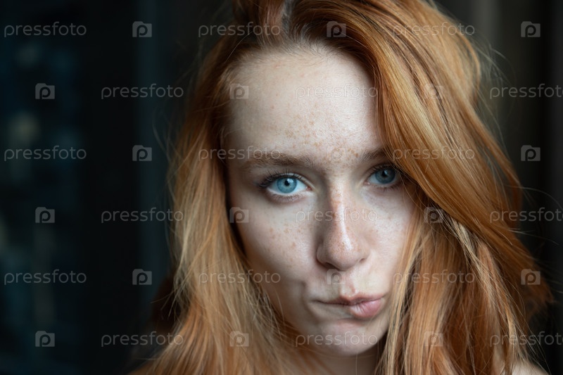 Портрет молодой красивой женщины с рыжими волосами в студии