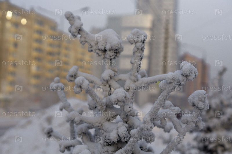 Замерзшие деревья в сильный мороз в парке