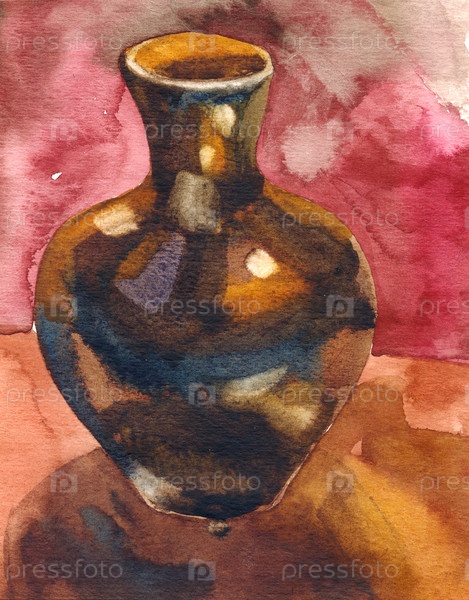 Акварельный натюрморт. Кувшин на фоне драпировок