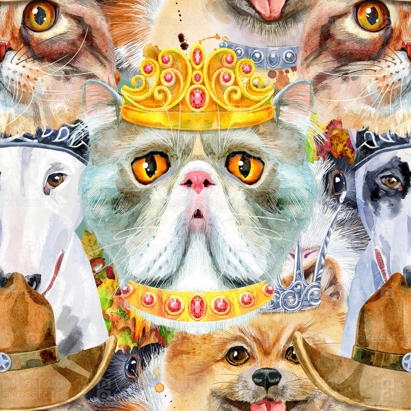Бесшовный рисунок собаки, морской свинки, кошки. Иллюстрация акварельных домашних животных. Акварель рисованной иллюстрации