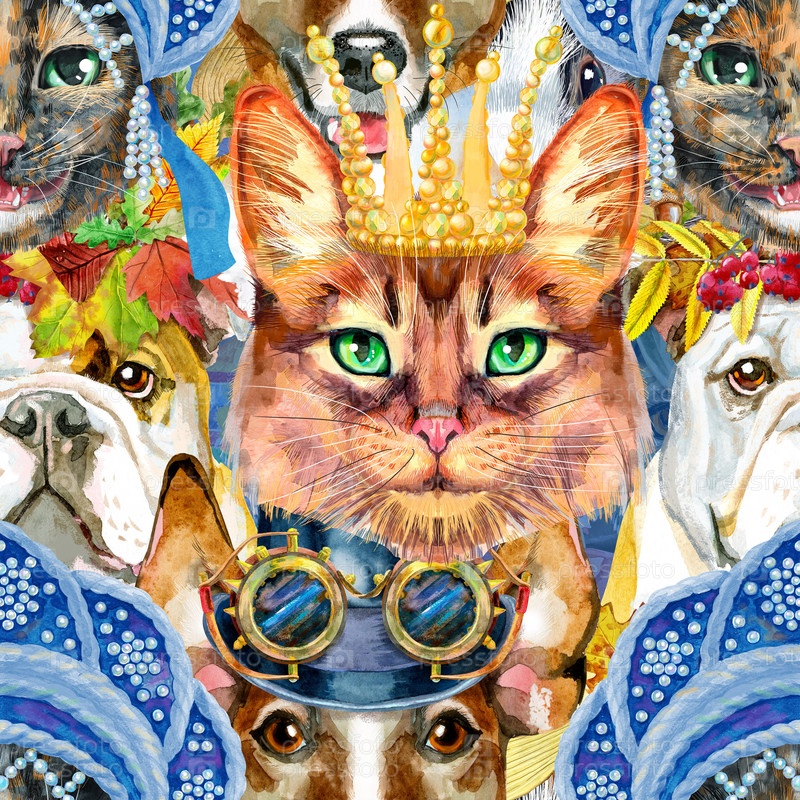 Бесшовный рисунок собаки, морской свинки, кошки. Иллюстрация акварельных домашних животных. Акварель рисованной иллюстрации