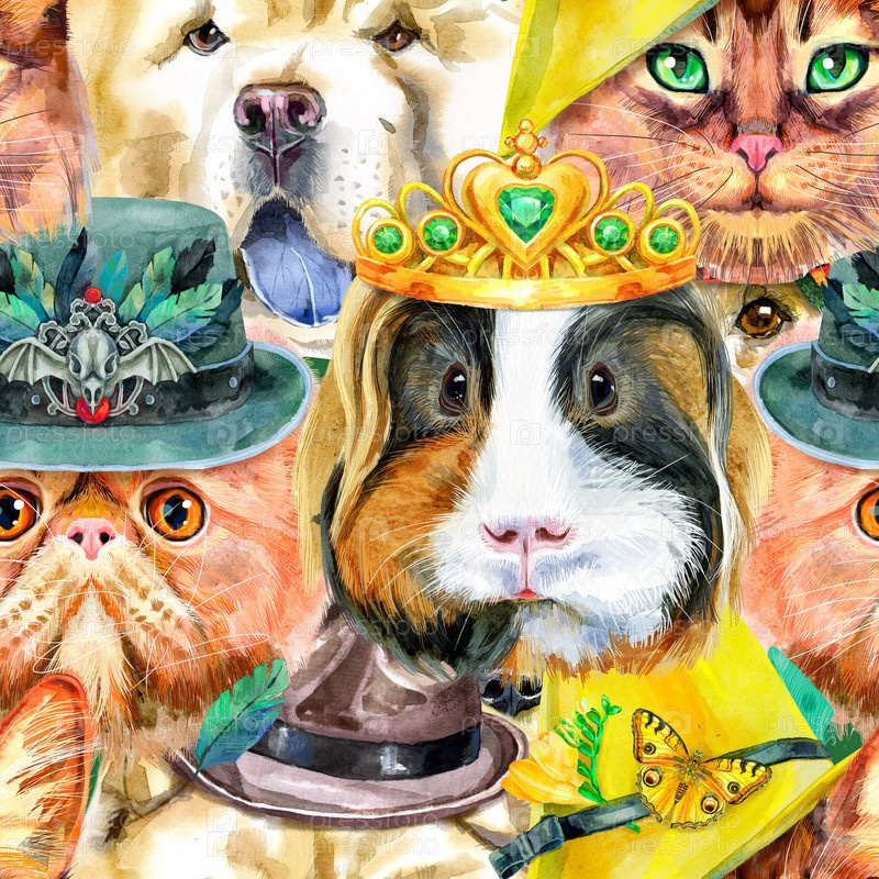 Бесшовный рисунок домашних животных. Ручная роспись акварельным рисунком, изолировать клип на белом фоне
