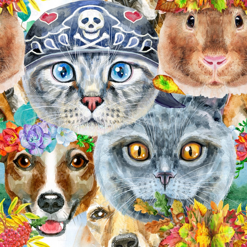 Бесшовный рисунок домашних животных. Ручная роспись акварельным рисунком, изолировать клип на белом фоне