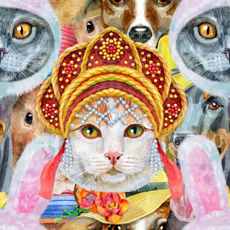 Бесшовный рисунок собаки, морской свинки, кошки. Иллюстрация акварельных домашних животных. Акварель рисованной иллюстрации