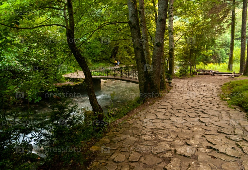 Тропа в ущелье реки Псырцха, паломники идут к келье и месту казни святого апостола Симона Кананита. Новый Афон, Абхазия