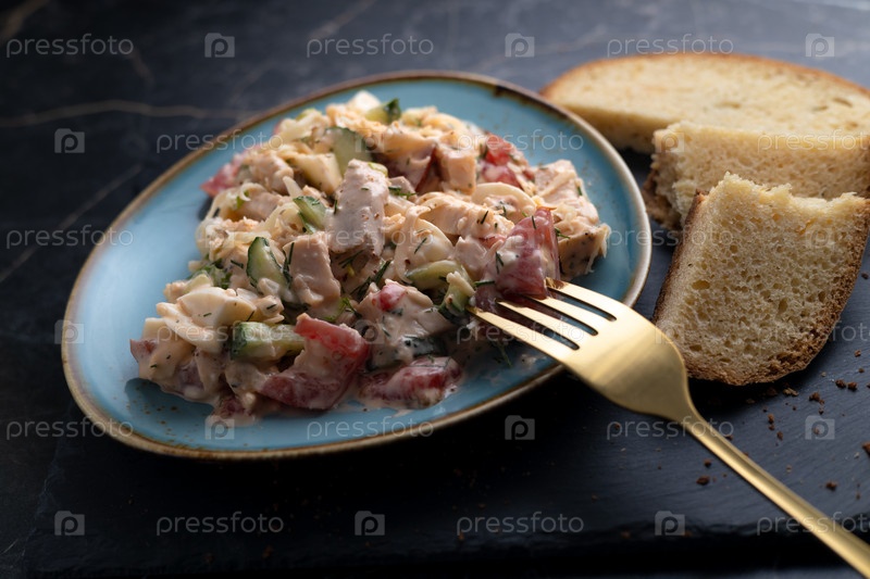Салат с мясом в тарелке