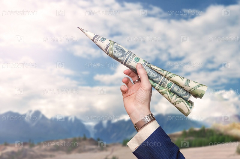 Концепция роста доллара. Денежная ракета в руках бизнесмена