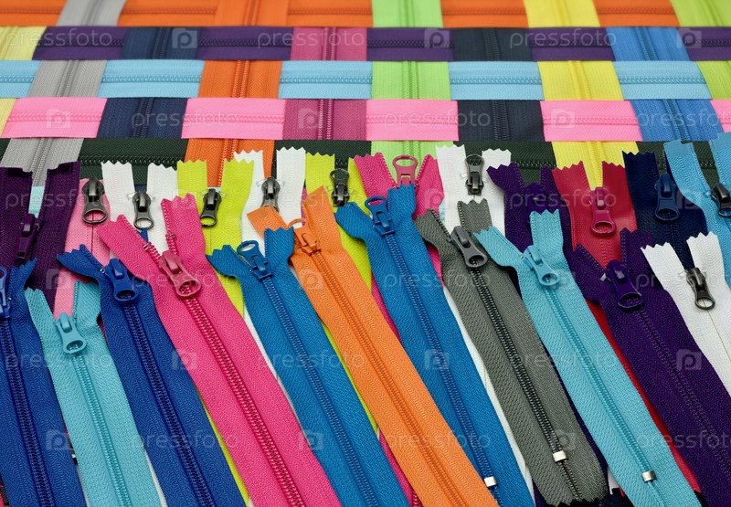 Замки на молнии разных цветов выстроились в ряд