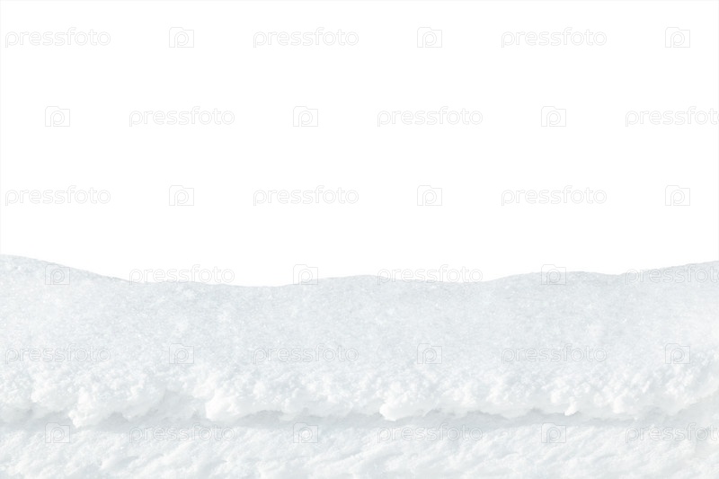 Слой свежего снега на белом фоне. Верхняя часть сугроба зимой
