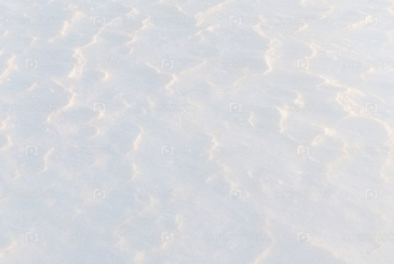 Фон густого снега, наложенного друг на друга. Твердая снежная зимняя текстура, освещенная заходящим солнцем. Абстракция