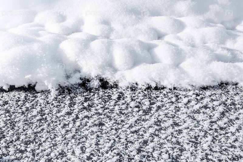 Сугроб и иней на льду озера