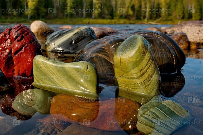 Россия. Западные Саяны. Разноцветные минералы необычной красоты в горных притоках реки Казыр