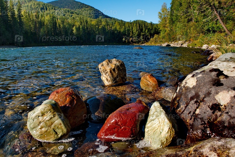 Россия. Западные Саяны. Разноцветные минералы необычной красоты в горных притоках реки Казыр