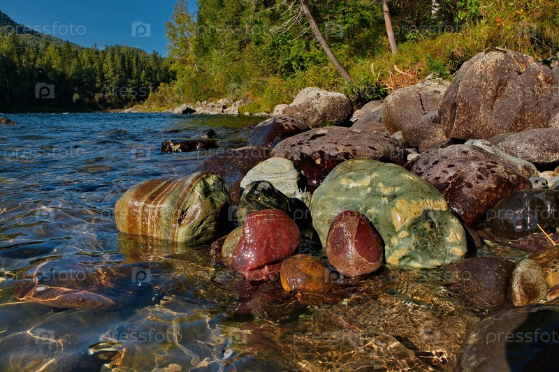 Россия. Западные Саяны. Разноцветные минералы необычной красоты в горных притоках реки Казыр