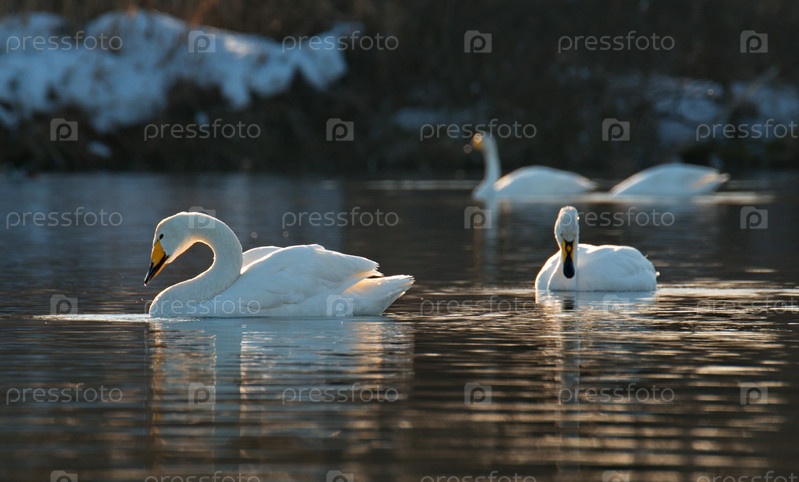 Россия. Алтайский край. Охраняемое замерзающее озеро близ села Урожайное, в котором круглый год обитают дикие лебеди и утки
