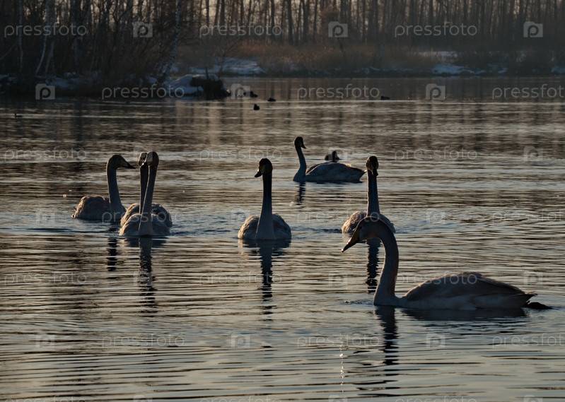 Россия. Алтайский край. Охраняемое замерзающее озеро близ села Урожайное, в котором круглый год обитают дикие лебеди и утки