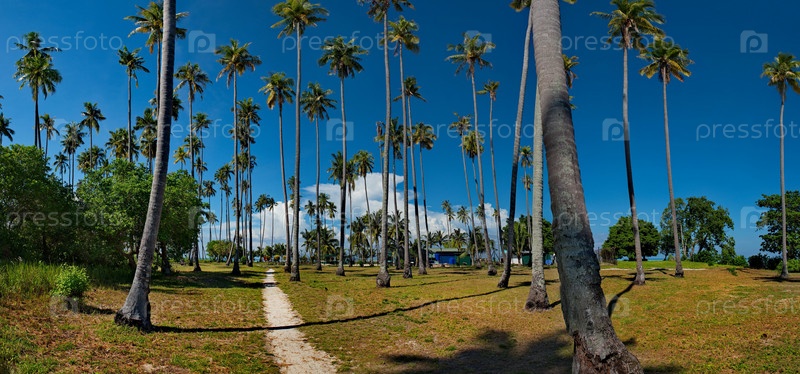 Малайзия. Кокосовые пальмы на многочисленных рифовых островах близ острова Борнео, недалеко от города Семпорна