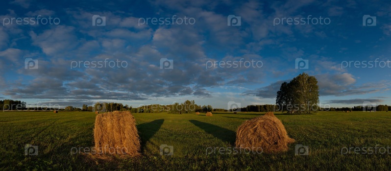 Россия. Западная Сибирь. Летний солнечный вечер на скошенных полях близ города Омска