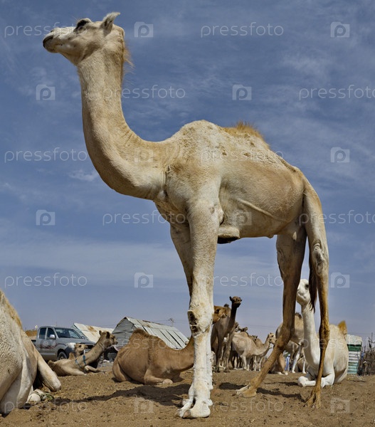 Западная Африка. Мавритания. Одногорбые верблюды на столичном верблюжьем рынке, где ежедневно продается и обменивается огромное количество верблюдов разных пород и возрастов