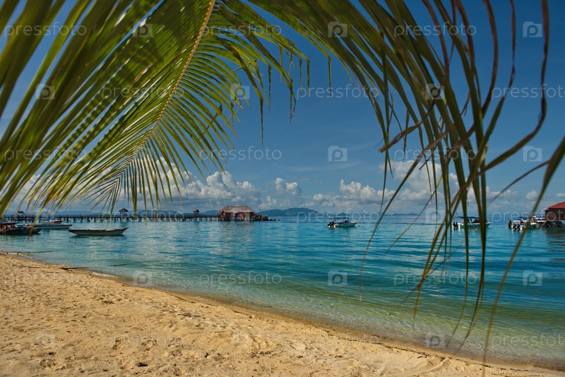 Малайзия. Кокосовые пальмы на многочисленных рифовых островах близ острова Борнео, недалеко от города Семпорна