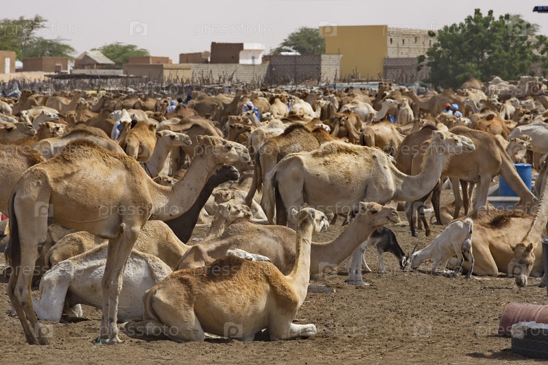 Западная Африка. Мавритания. Одногорбые верблюды на столичном верблюжьем рынке, где ежедневно продается и обменивается огромное количество верблюдов разных пород и возрастов