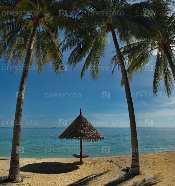 Малайзия. Кокосовые пальмы на многочисленных рифовых островах близ острова Борнео, недалеко от города Семпорна