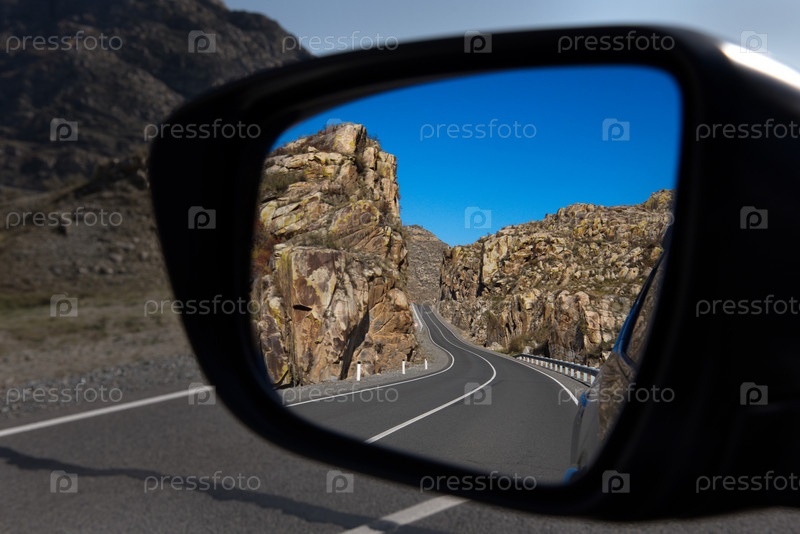 Россия. Горный Алтай. Чуйский тракт в зеркале автомобиля