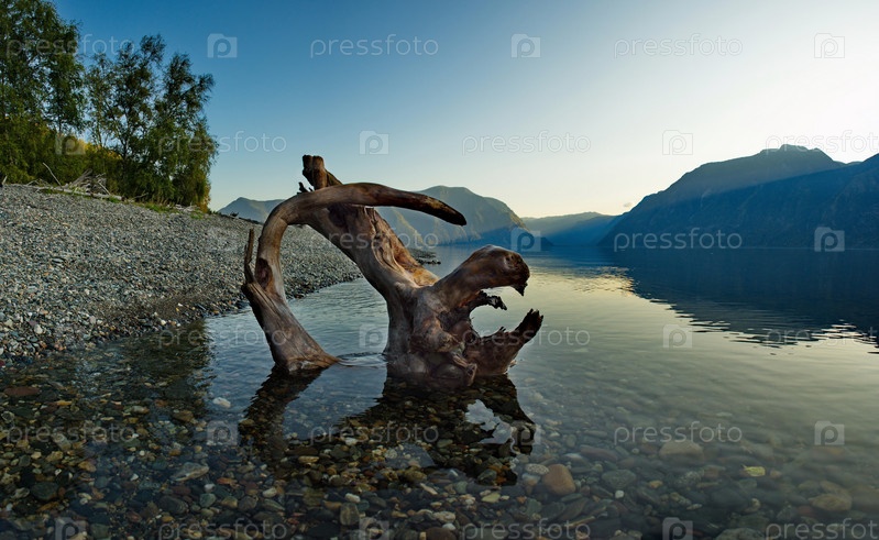 Россия. горный Алтай. Причудливые коряги на южном берегу Телецкого озера недалеко от устья реки Чулышман