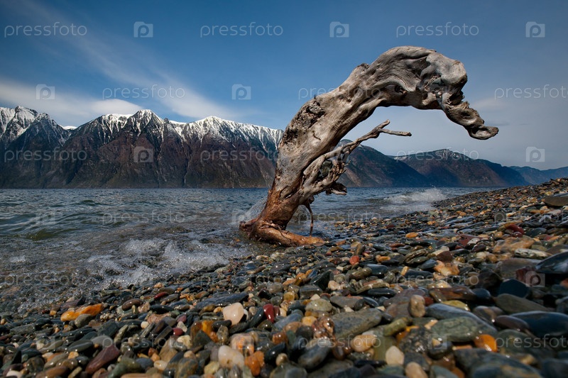 Россия. горный Алтай. Причудливые коряги на южном берегу Телецкого озера недалеко от устья реки Чулышман