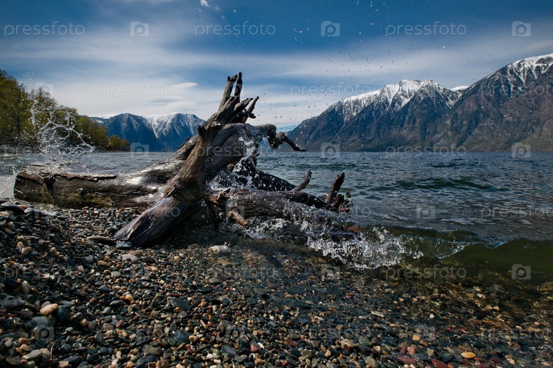 Россия. горный Алтай. Причудливые коряги на южном берегу Телецкого озера недалеко от устья реки Чулышман