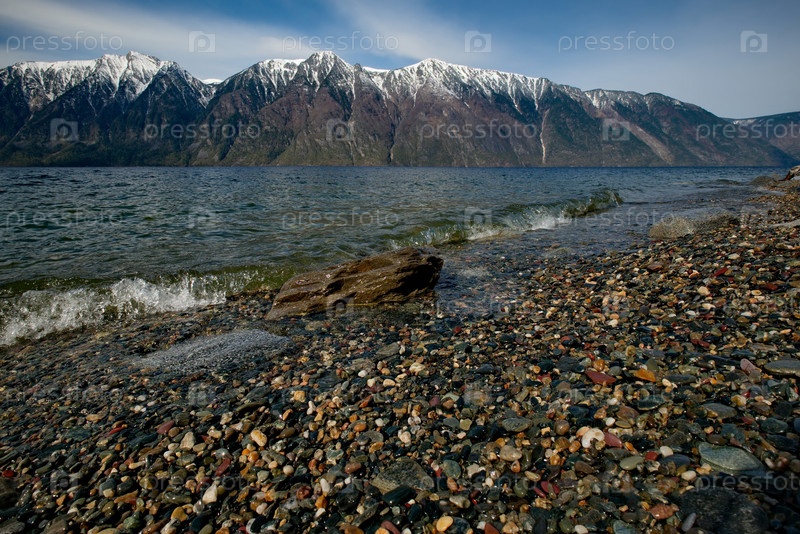 Россия. Юг Западной Сибири, Горный Алтай. Разноцветные камни на берегу Телецкого озера в районе устья реки Чулышман